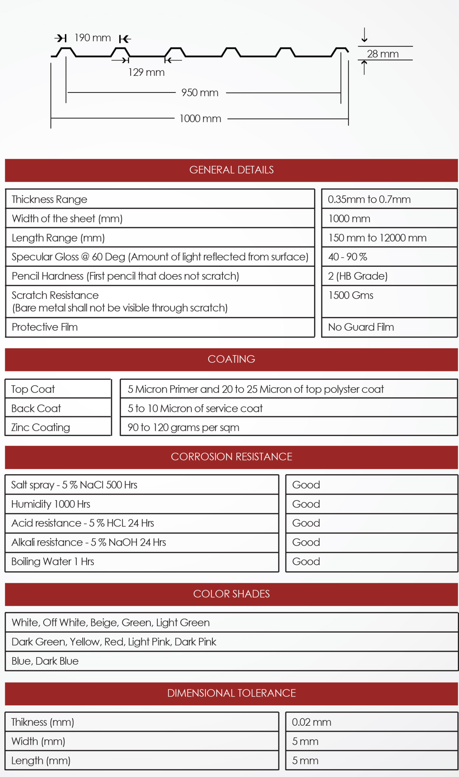 - Wide range of thickness between 0.35mm to 0.7mm with a width of 1000mm.